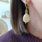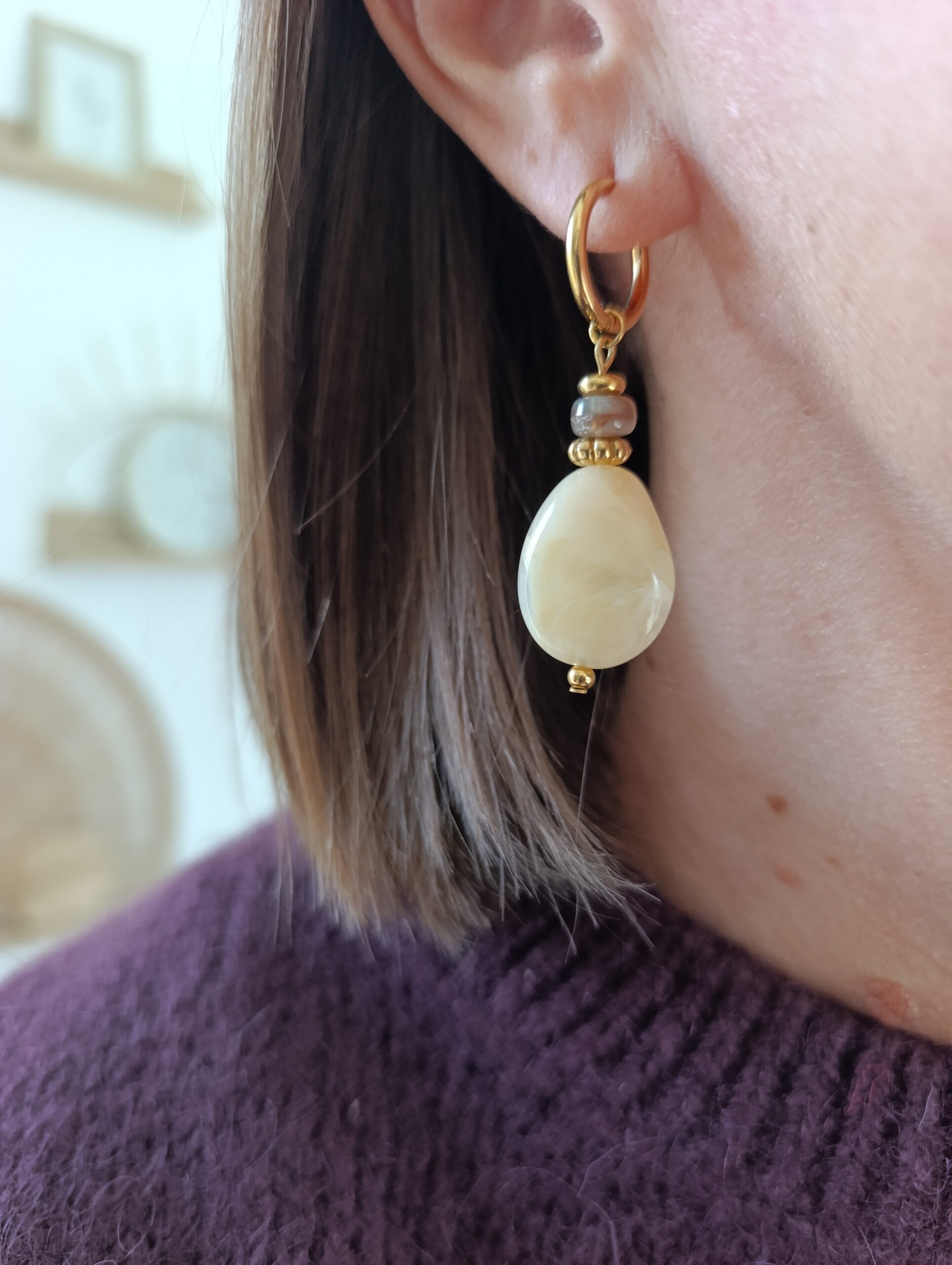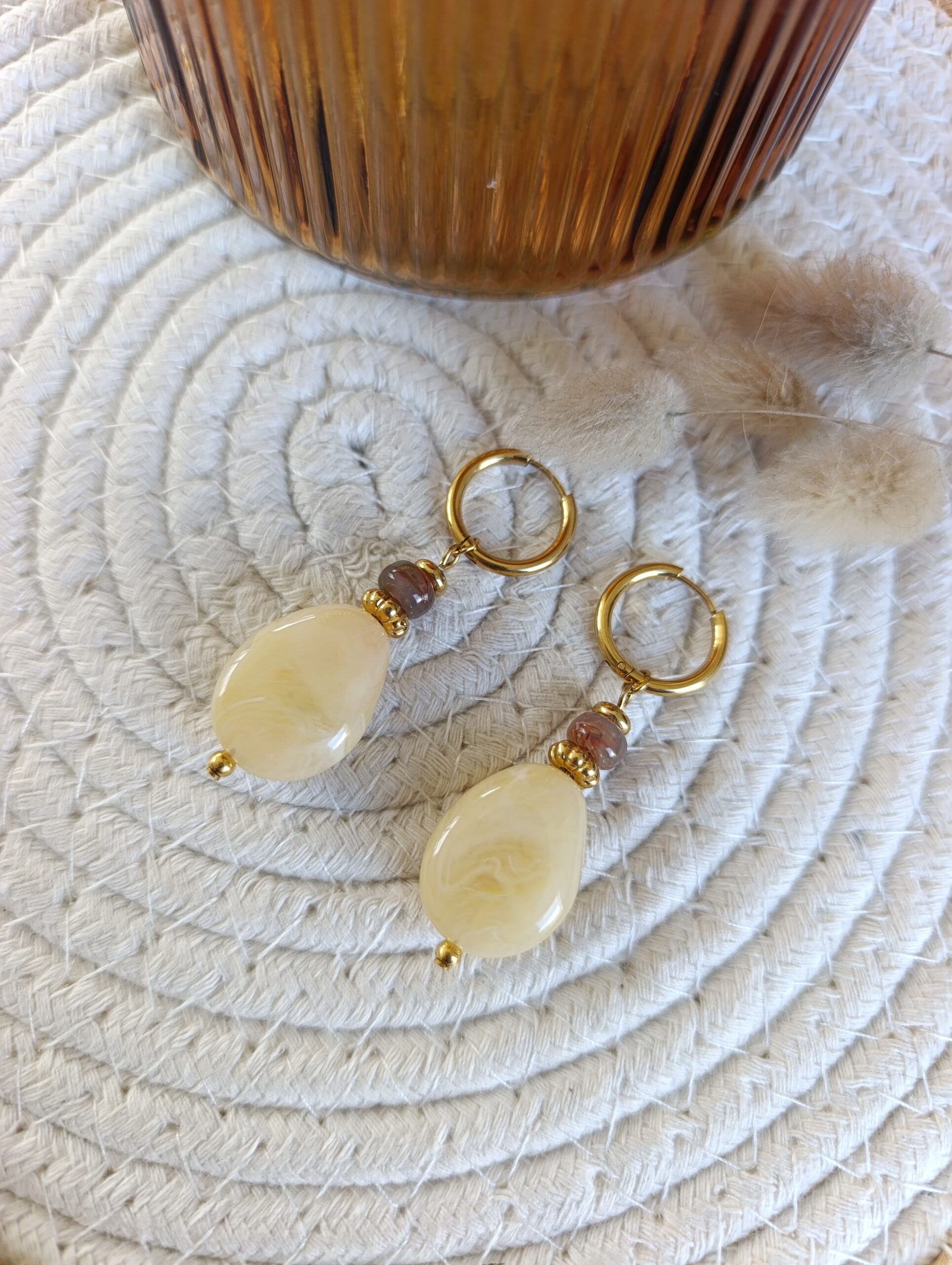 • Pendentifs perle irrégulière en résine beige rose marbré