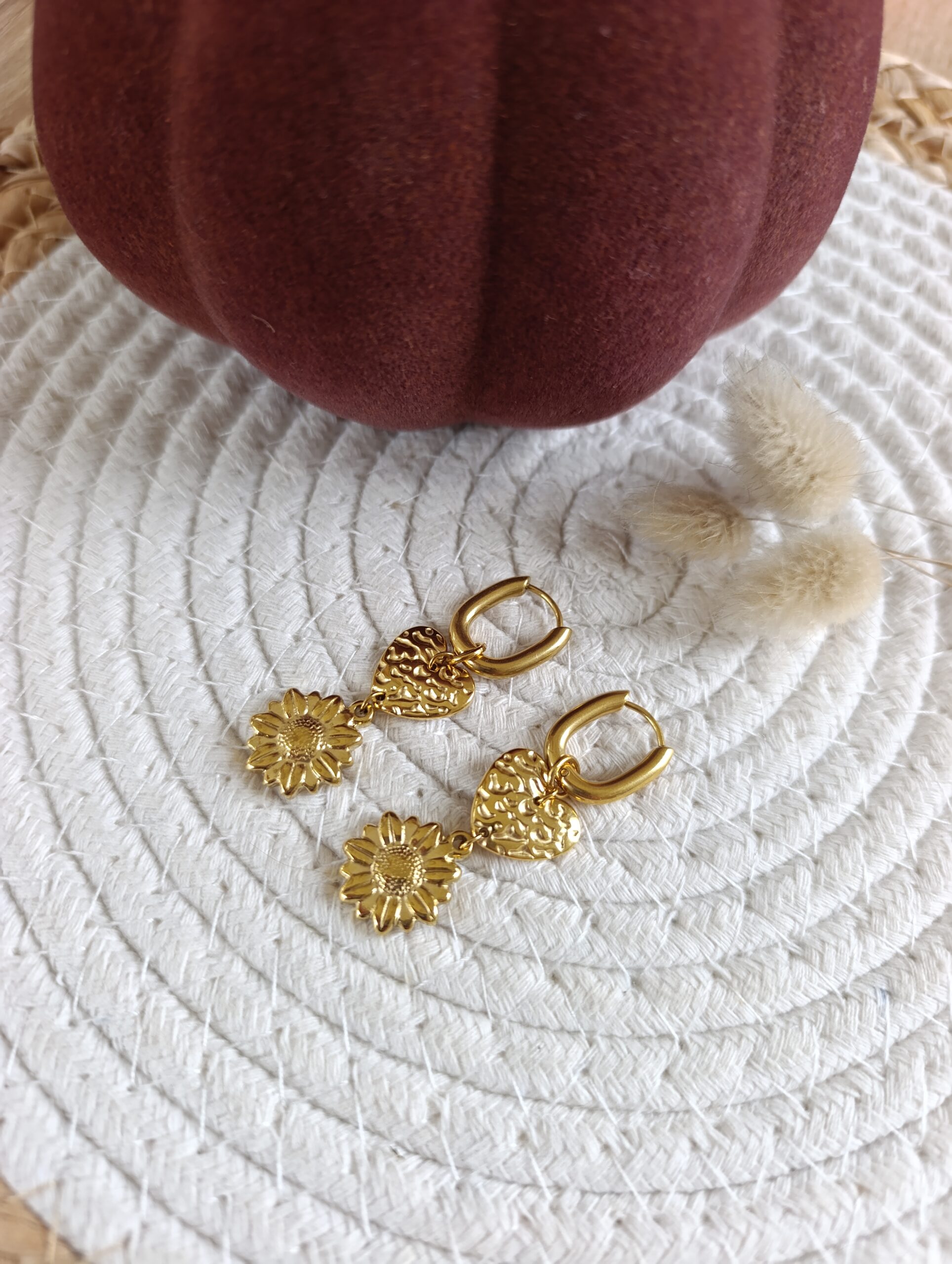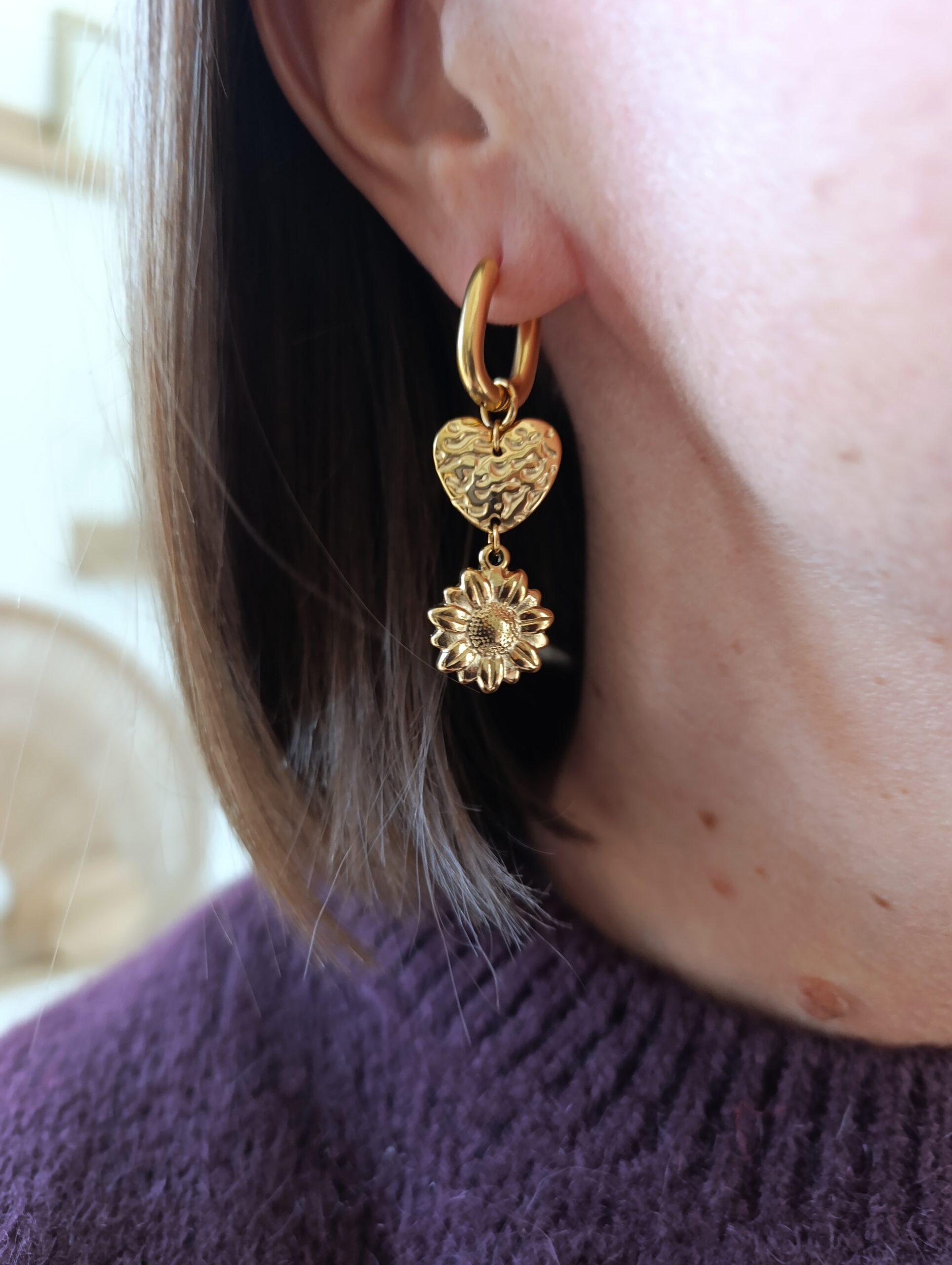 • Créoles ovales avec pendentifs cœur et tournesol